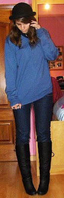 También queria enseñaros parte de mis compras de rebajas. Aparte del jersey azul clarito, también me compré un bombín (¡Es tan Charlie Chaplin!).